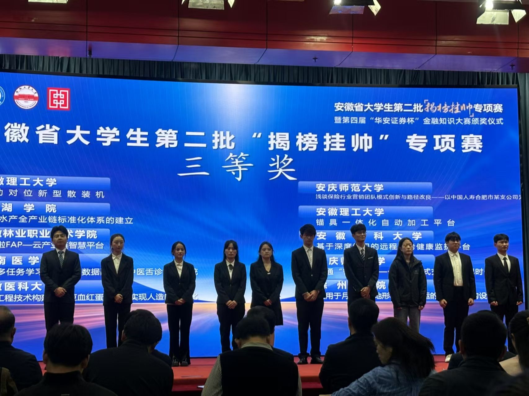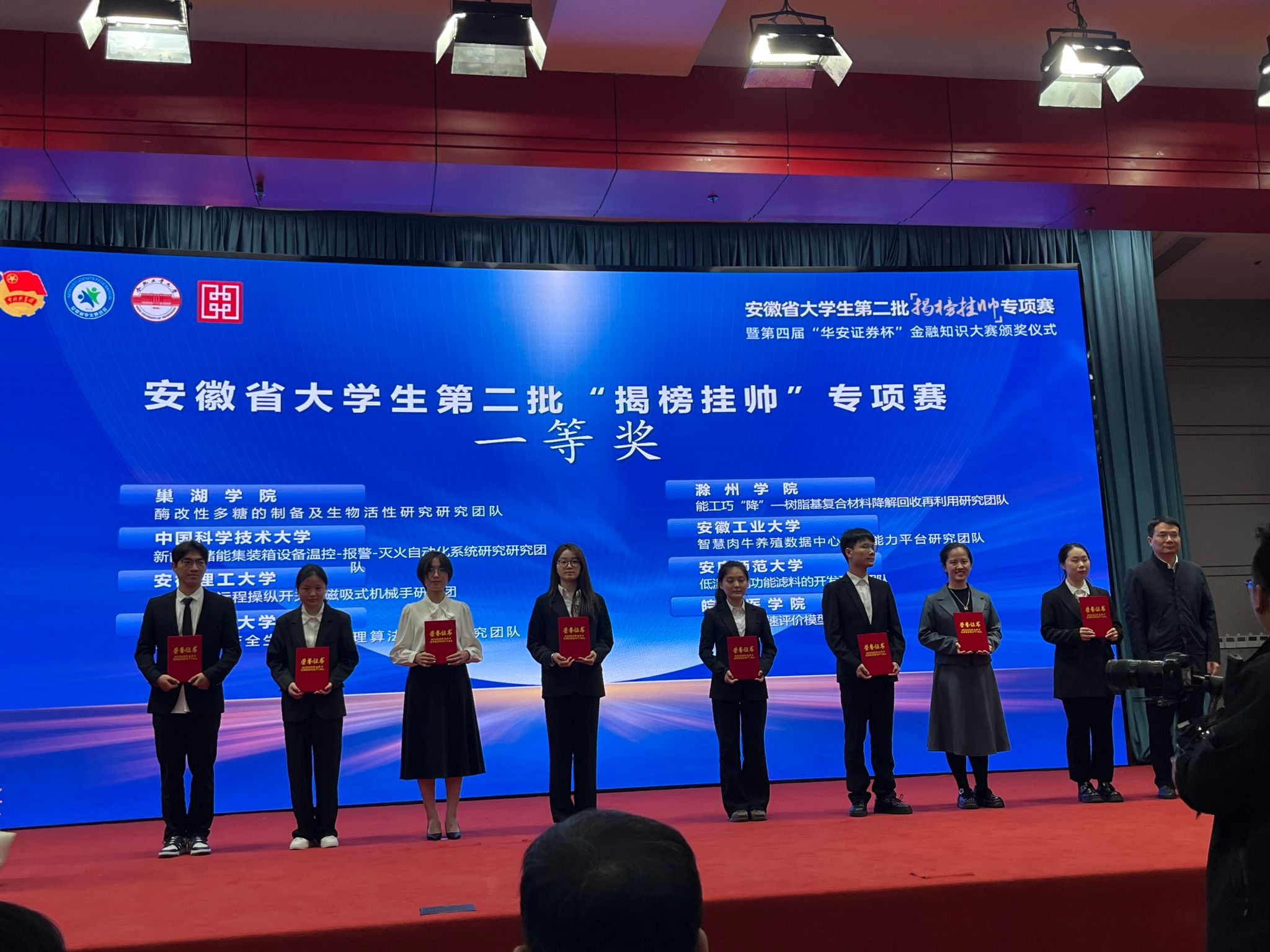 10月22日,由团省委、省教育厅、省科协、省社科院、省学联共同主办的第十一届“挑战杯”安徽省第二批大学生课外学术科技作品竞赛“揭榜挂帅”专项赛决赛在合肥工业大学举行。经过“征题”“发榜”“议榜”“竞榜”“评榜”等工作环节,我校4支参赛团队与来自全省各高校的50支“擂主”团队在决赛中同台竞技,以优异的表现斩获一等奖1项、二等奖2项、三等奖1项。