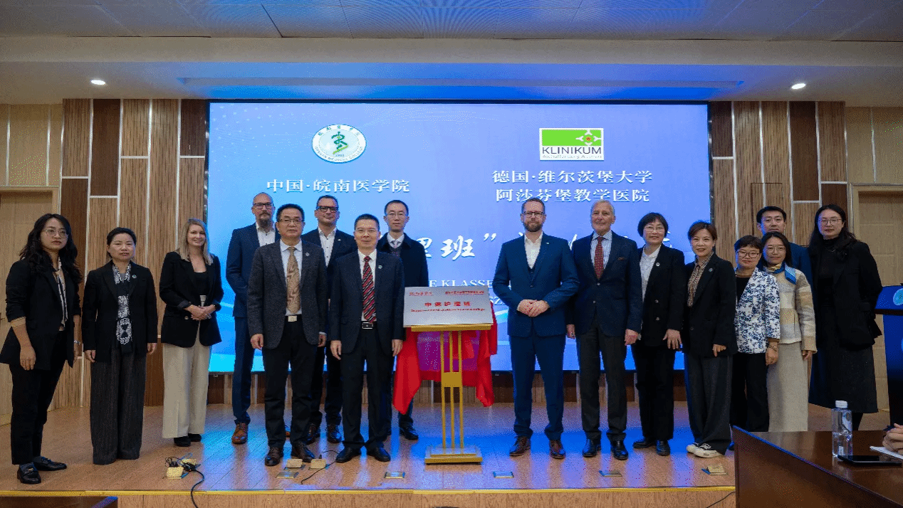在众人的期待中,双方共同揭牌,标志着“中德护理班”正式启动。最后,全体参会人员合影留念,为这一重要时刻留下美好的回忆。