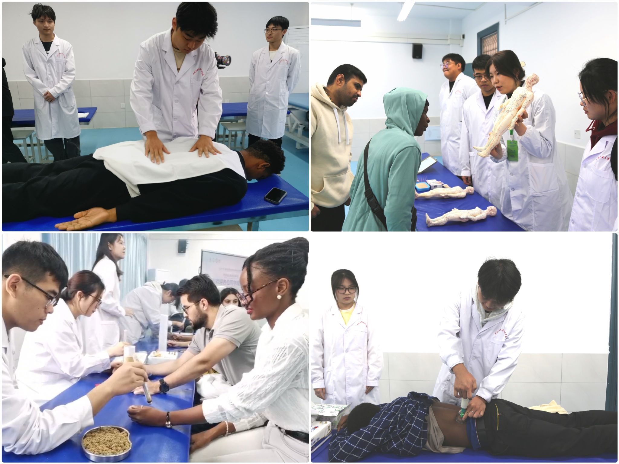 实践体验环节更是让国际学生们热情高涨。拔罐时,皮肤上留下的罐印让他们对祛湿散寒有深入了解;艾灸时,独特的艾草香气与穴位热敷让他们颇感兴趣;中医推拿按摩则让他们充分体会到身心放松的愉悦。“推拿按摩太舒服了,我感觉身体的疲惫都消失了,我一定要把这个方法介绍给我的朋友们。”一位国际学生笑着说。