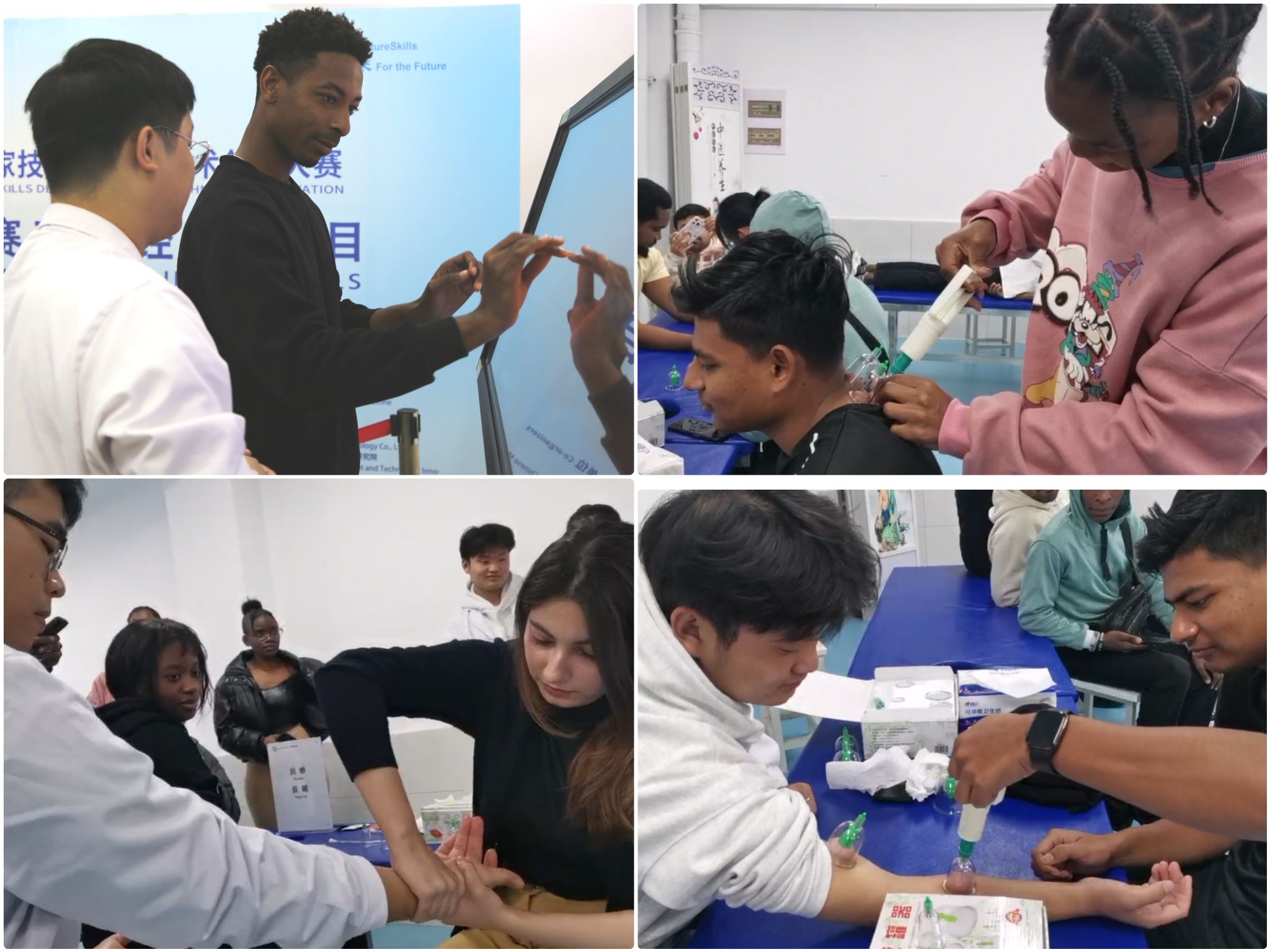 近日,2024一带一路暨金砖国家技能发展与技术创新大赛——中医临床技能赛项在安徽中医药高等专科学校举行,我校国际学生参与赛前观摩活动,沉浸式体验中医药文化的博大精深。