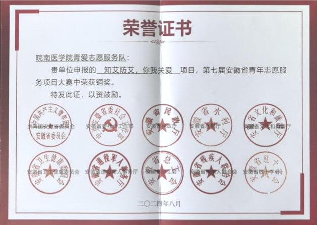 坚持健康教育与志愿服务相融合,在世界防治结核病日、世界艾滋病日、中国学生营养日等活动中逐渐形成了具有专业特色和较强影响力的党建和志愿服务品牌。学院共有4支志愿服务队,获得国家级“优秀团队”、国家级社会实践团队等50余项国家级荣誉,安徽省暑期“三下乡”社会实践优秀团队等100余项省级以上荣誉,其中1支志愿服务队获批国家级青春健康高校项目,1支志愿服务队连续10年获得安徽省百千万志愿者结核病防治知识传播活动大学生志愿者团体一等资助。