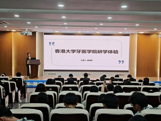 9月16日晚,口腔医学院在滨江校区(南区)东二教学楼五楼报告厅举办口腔医学专业学生出国(境)研学活动分享交流会,邀请了学院2022级学生张颖洁、2022级学生戴鲂、2024级学生谢泽宸和彭鸣飞分享他们在香港、英国以及日本名校访学的见闻和心得。口腔医学院党委副书记张晋艳、各年级辅导员和学生参加。