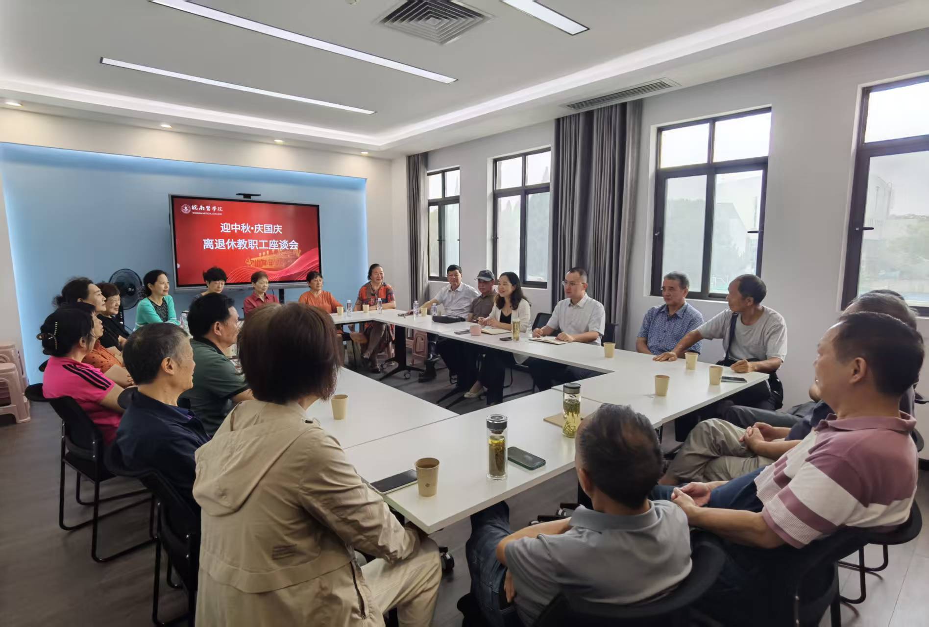 话佳节同庆,叙发展共行。9月28日,“迎中秋·庆国庆”座谈会在赭麓校区举行,20余位离退休教职工欢聚一堂,共庆佳节、共忆校史、共话发展。座谈现场气氛温馨而热烈,老同志们畅所欲言,有的深情回顾学校发展历程,有的真诚抒发爱国爱校情怀,有的快乐分享健康养生心得,现场欢声笑语不断,充分展现了老有所乐、心系校园的深厚情谊与精神风貌。