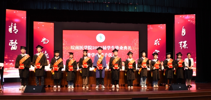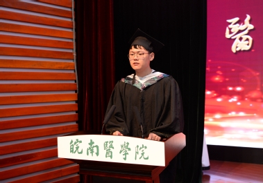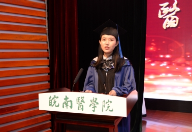 毕业生代表,病原生物学专业硕士研究生方瑜同学,临床医学专业本科毕业生陈瑞同学先后发言。他们表达了对母校的诚挚谢意和惜别之情,表示将谨记母校校训,继承和发扬皖医精神,心有理想,情怀家国,以实现中华民族伟大复兴为己任,为祖国医疗卫生事业的发展,为人类身心健康奋斗终生,不辜负母校的培养和期望。