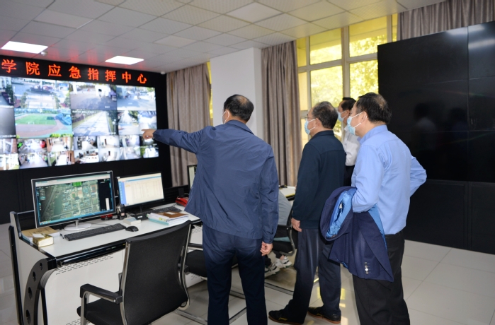 赵振华一行详细了解了学校疫情防控工作流程及具体措施落实情况,实地查看了校门、视频监控中心、图书馆、食堂、学生宿舍、快递站、临时隔离用房、围墙、防疫物资储备室、校医院等重点场所,详细询问了教职工“家校两点一线”、师生和服务人员健康监测等管理情况。检查中,学校主要领导汇报了学校疫情防控工作措施落实和进展情况,表示学校高度重视疫情工作,及时召开专题会议安排部署,各部门、单位严格落实“日报告”“零报告”“晨午晚检”等制度,开展了四轮全员核酸检测,并对相关人员进行追踪摸排,加强值班值守,严格四级值班制,加大对校园公共场所的消杀,做好关心关爱师生和稳供保价,积极开展线上教学,多措并举宣传普及防疫知识和要求等。