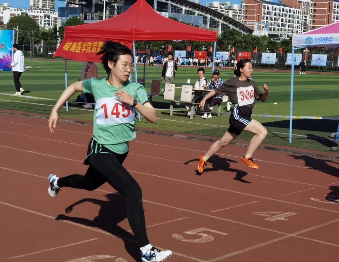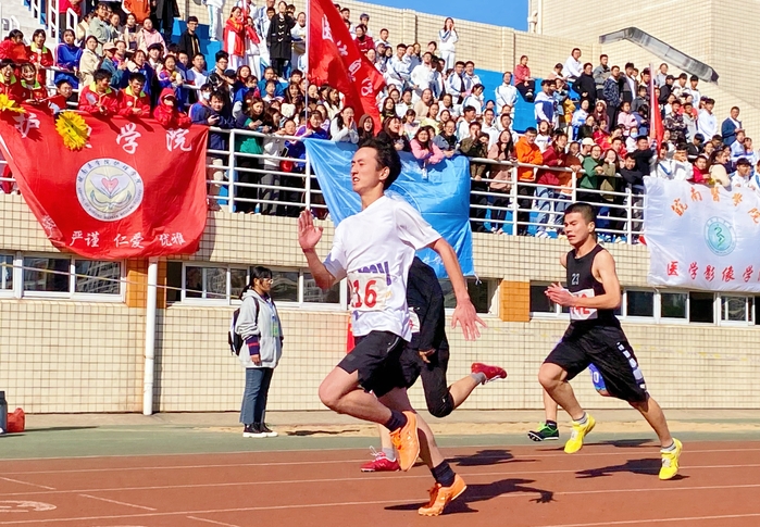 踏上跑道,是一种选择。离开起点,是一种勇气。驰骋赛场,是一种胜利。赛场上,运动员们勇于挑战,超越自我,赛出了风格、赛出了水平。有的如离弦之箭,似骏马奔腾,勇往直前,最后一刻向着胜利的终点冲刺;有的一步跃起,空中走步,以龙腾虎跃般气势跳出新的成绩;有手握铅球,胸有成竹,一声嚎去,铅球在空中划过一条优美的抛物线……赛场下,啦啦队敲出激昂的鼓点,呐喊声声,红旗飞扬,传递自己的力量。裁判官,公正客观,坚守职责。志愿者,热心服务,默默奉献。朝气的面孔、挥洒的汗水、付出的身影、傲人的成绩,展现出皖医学子“团结、友谊、进步”的运动精神和拼搏向上、勇争先锋的精神风貌。