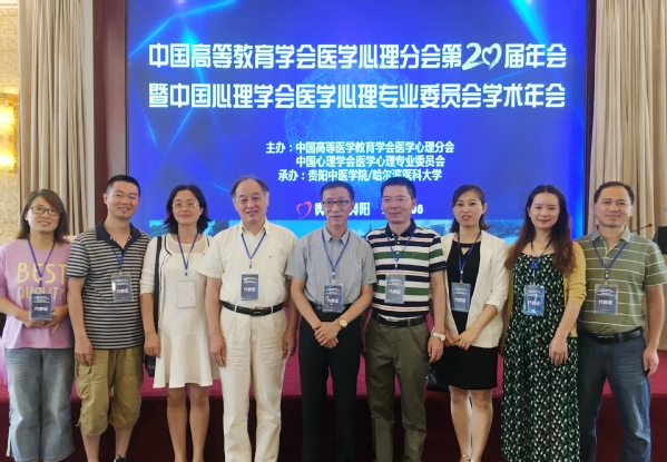 中国高等教育学会医学心理学分会第20届年会暨中国心理学会医学心理学专业委员会学术年会于83-6日在贵州省贵阳市召开,来自北京大学、哈尔滨医科大学、浙江大学、南京中医药大学等医学院校、医院、研究所的百余名代表参会,人民卫生出版社医学教育中心副主任兼高等医学教育部主任邬洁、编辑潘丽到会,我校应用心理学团队十余人应邀出席会议。
