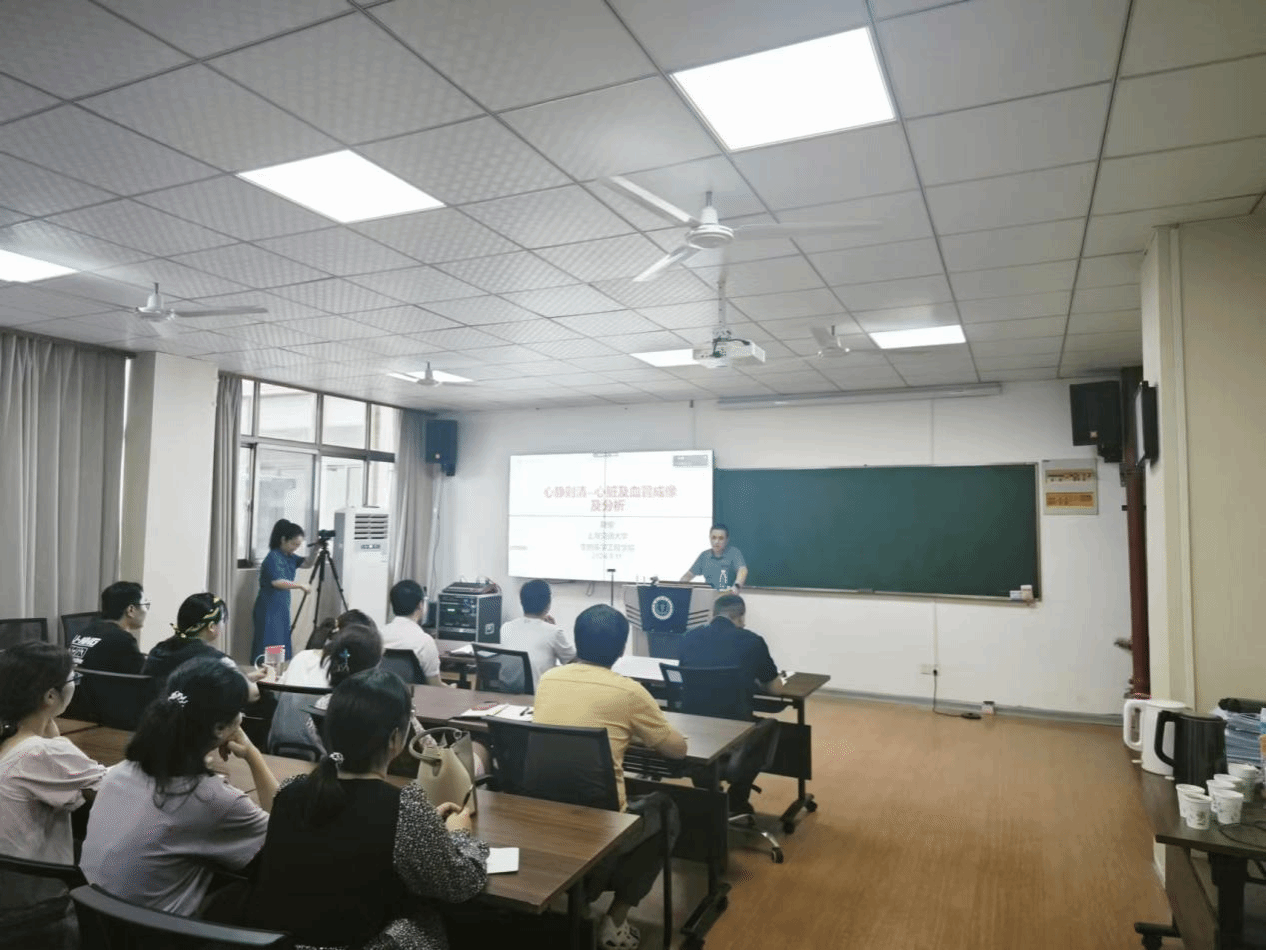 赵俊心静则清—心脏及血管成像”为题作讲座。他首先介绍了CT在心脏成像中的应用,以钙化积分、冠脉CT血管成像、静态MPI、动态MPI等场景为例,分享了其课题组在CT成像上的最新研究成果。结合CT成像在影像学中的优势和不足,赵俊从去除成像伪迹的角度,介绍了多源、多探测器的快速扫描CT成像技术,并结合多种算法提升成像质量。随后,他以4维心脏CT成像为例,介绍了其团队在更低剂量成像上的研究方法。赵俊还与参会教师就CT成像的硬件设计、算法效果等展开了热烈交流,对学院教师提出的科学问题逐一进行了回答。