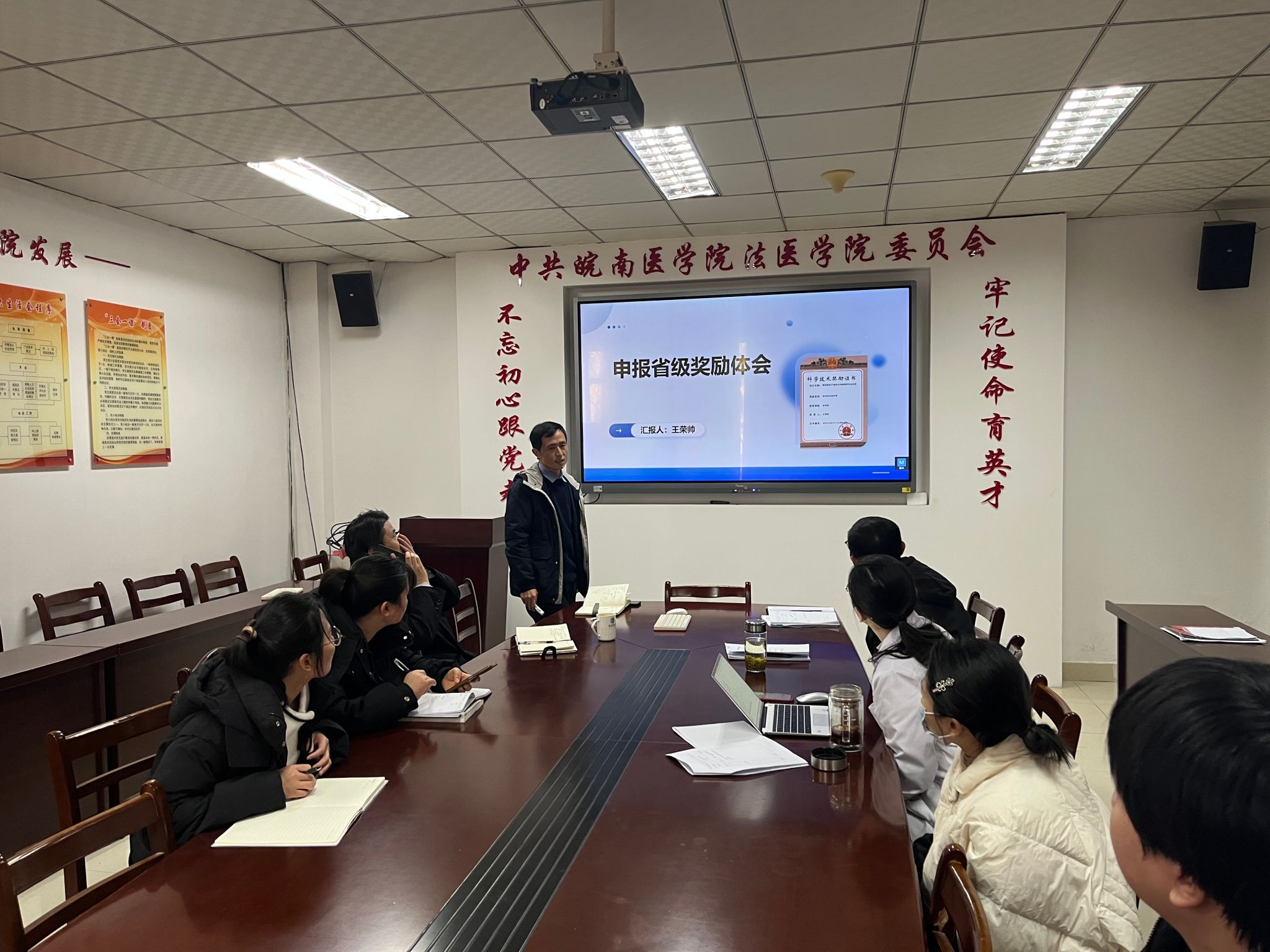 会上,徐祥传达了学校关于本次申报工作的具体要求,解读了安徽省科技奖申报指南的细则。王荣帅以“‘新冠肺炎尸检技术和病理研究及应用’项目申报的工作流程为主题,从项目申报类别选定、前期材料准备到申报注意事项等方面,全面细致地阐述了科学技术奖励申报的全过程,为拟申报项目的教师提供了宝贵经验。
