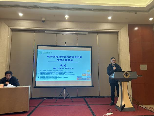 12月27日-29日,安徽省心理健康教育学会学术年会以“智能时代青少年心理发展与促进”为主题,邀请了北京师范大学李虹、中国科学技术大学孔燕等国内外知名心理健康教育专家作大会报告。我校黄龙副教授作《教师支持对学生学习倦怠的影响及心理机制》的报告,并参加圆桌论坛,与省内外专家深入交流了智能化赋能大中小学生心理健康教育、测评与干预等一体化建设方案。