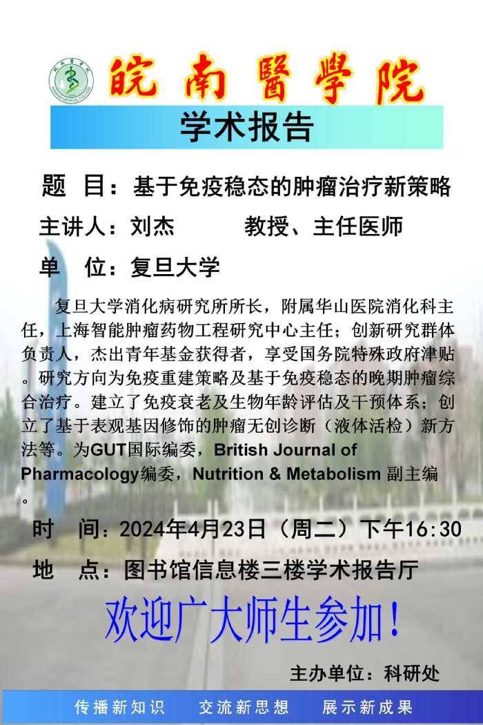 学术报告:基于免疫稳态的肿瘤治疗新策略