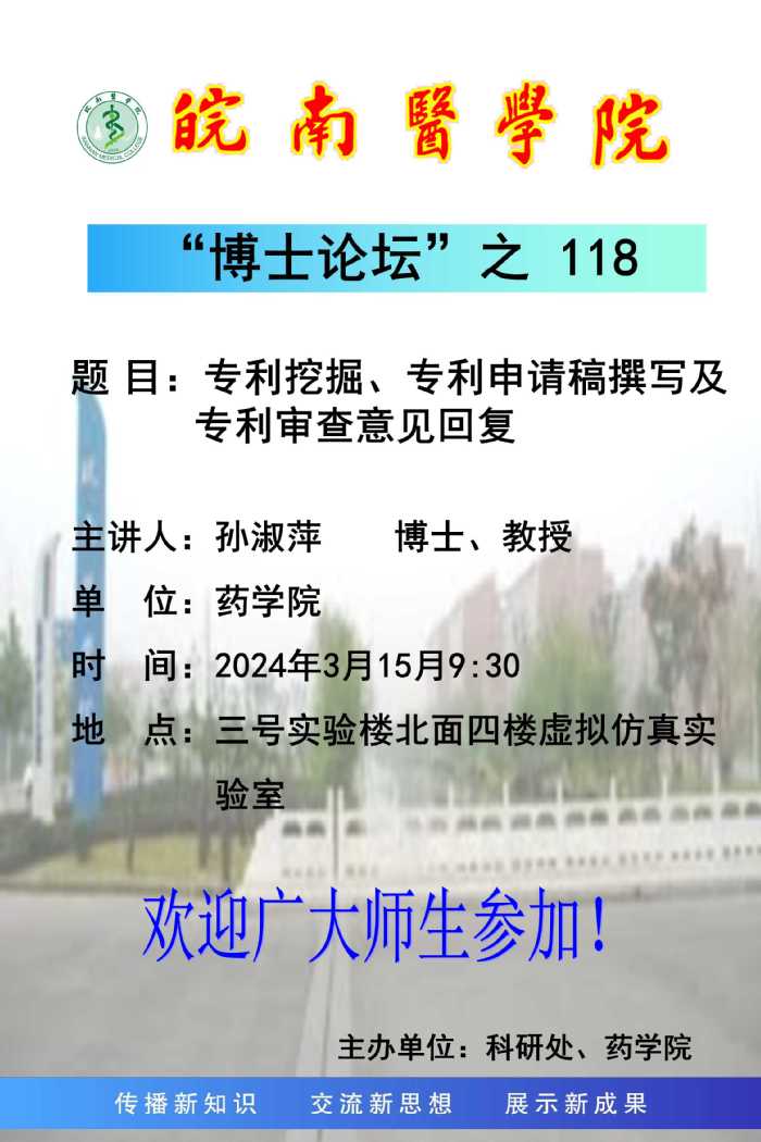 博士论坛之118:专利挖掘、专利申请稿撰写及专利审查意见回复