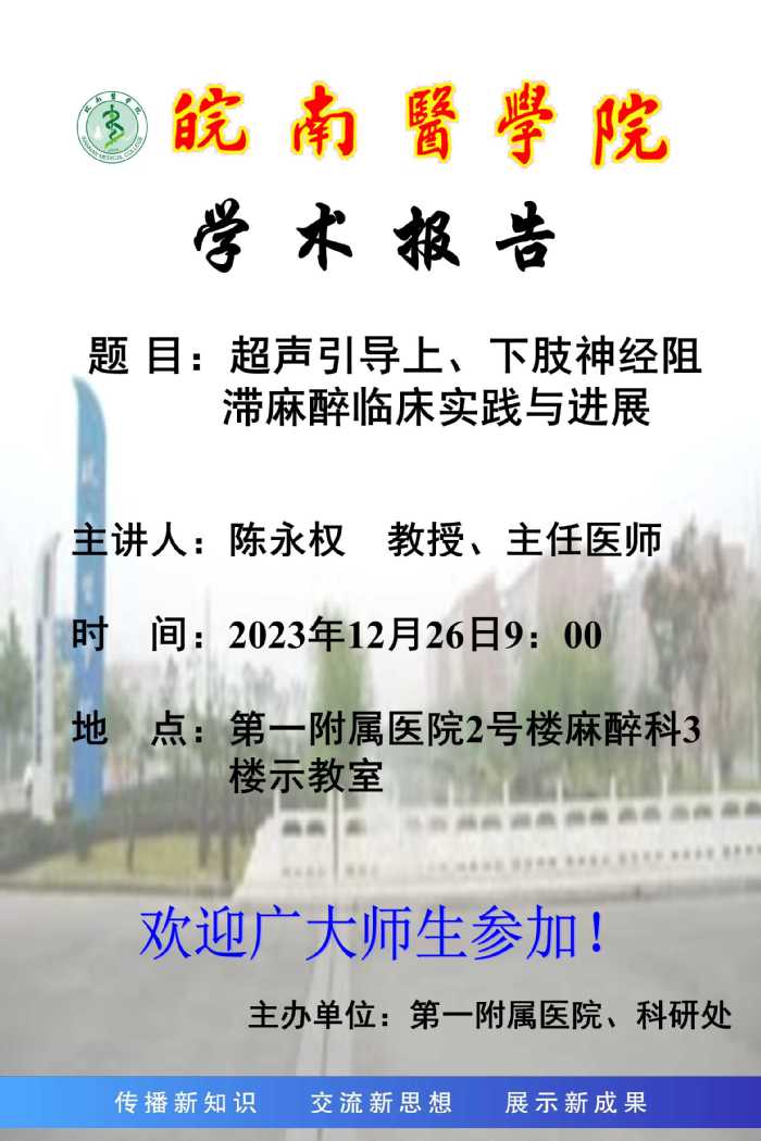 学术报告:超声引导上、下肢神经阻滞麻醉临床实践与进展