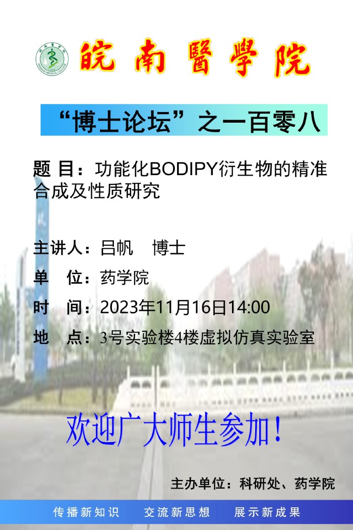 博士论坛之一百零八:功能化BODIPY衍生物的精准合成及性质研究
